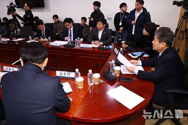 [서울=뉴시스] 김명년 기자 = 김영배 국회 외교통일위원회 여당 간사가 3일 오전 서울 여의도 국회 의원회관에서 열린 이란 사태 관련 더불어민주당 외통위원-외교부 당·정 간담회에서 발언하고 있다. 2026.03.03. kmn@newsis.com