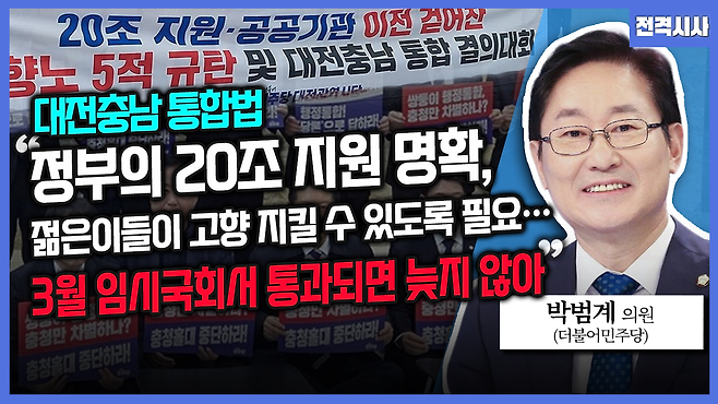 [전격시사] 박범계 더불어민주당 의원 - “대전충남 통합법 “정부의 20조 지원 명확, 젊은이들이 고향 지킬 수 있도록 필요…3월 임시국회서 통과되면 늦지 않아””