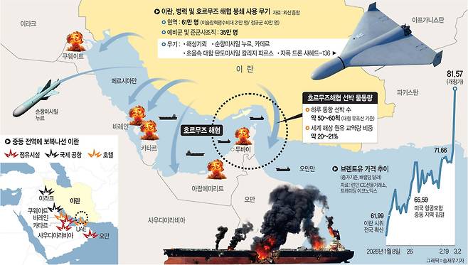 미국과 이스라엘 공격으로 수뇌부를 잃은 이란의 최정예 부대인 이란혁명수비대가 2일(현지시간) 호르무즈 해협 통과를 시도하는 모든 선박을 공격하겠다며 배수진을 치면서 중동이 초긴장하고 있다. 이란이 해협의 지리적 특성과 비대칭 전략을 이용한 공격을 예고하면서 글로벌 에너지 동맥인 호르무즈 해협이 화약고로 변하고 있다.