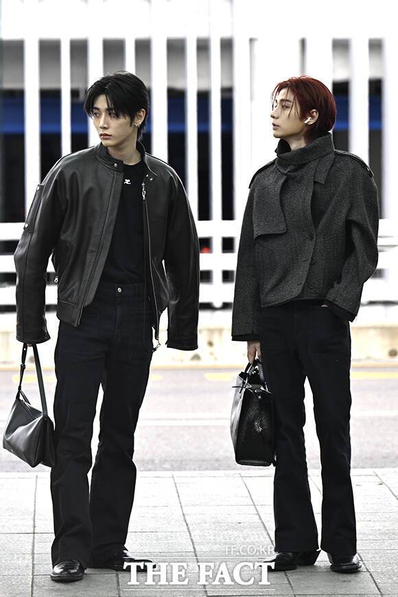 [더팩트 | 인천국제공항=송호영 기자] 그룹 보이넥스트도어의 태산(왼쪽)과 이한이 3일 오전 해외 일정 참석을 위해 인천국제공항에서 프랑스 파리로 출국하고 있다.