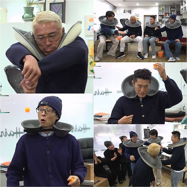 김동현의 얍삽 플레이도 변수다. 정공법 대신 중화받침대를 펼쳐 공을 쉽게 받으려는 전략을 시도하지만, 게임 베테랑 유재석의 눈을 피하지 못한다. 유재석은 "김봉, 왜 이렇게 반칙을 하는 거야"라며 본명까지 소환해 폭소를 자아낸다. 여기에 추성훈까지 혼돈의 플레이에 가세하며 엉덩방아를 찧는 등 몸개그가 이어진다. 유재석은 "게임을 왜들 요란하게 하는 거야"라며 아우성을 쳤다는 후문이다.