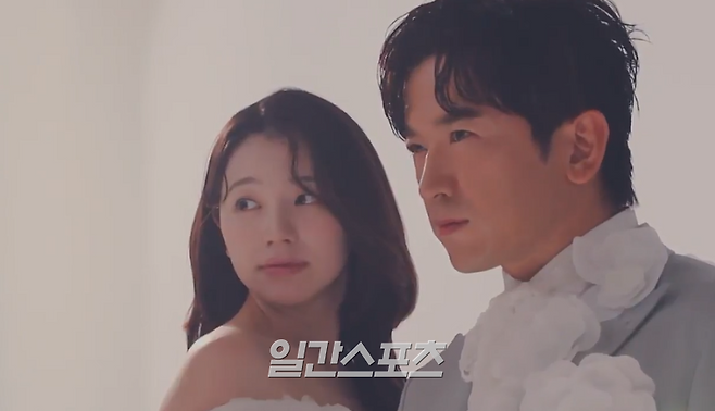 웨딩 화보도 공개됐다. 두 사람은 감각적인 스타일링으로 눈길을 사로잡았다. 이민우는 체크 패턴 등의 재킷에 화이트 플라워 장식을 더해 세련된 신랑의 모습을 연출했고, 이아미는 어깨라인이 돋보이는 순백의 드레스로 청순하면서도 우아한 자태를 뽐냈다. 서로를 의지하듯 밀착하거나 같은 곳을 응시하는 두 사람의 모습이 눈길을 모은다.