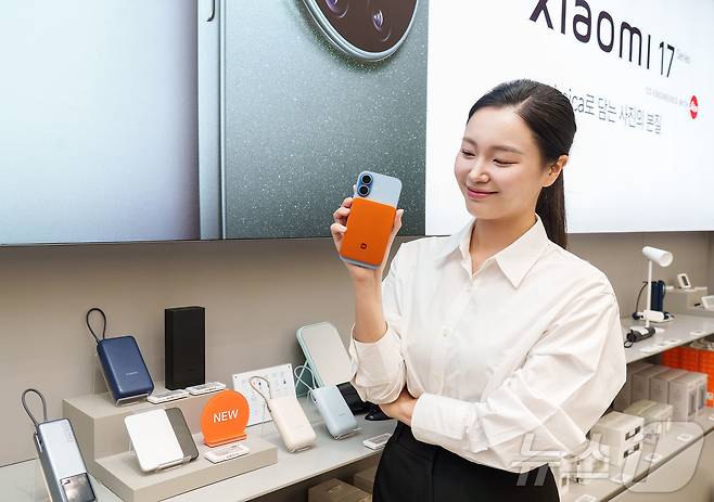 (서울=뉴스1) = 3일 Xiaomi 스토어 IFC몰점에 ‘Xiaomi 울트라 씬 마그네틱 보조 배터리 5000mAh’가 전시돼 있다. Xiaomi 울트라 씬 마그네틱 보조 배터리 5000mAh는 스마트폰에 부착 가능한 마그네틱 방식으로, 6mm 초슬림 두께와 98g 초경량 무게로 휴대성을 높였다. 기존 실버 색상에 이어 오렌지·블랙을 추가하며 선택의 폭을 넓혔다. (샤오미 제공. 재판매 및 DB 금지) 2026.3.3/뉴스1