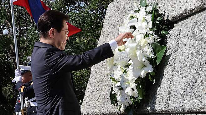 필리핀을 국빈 방문한 이재명 대통령이 마닐라에서의 첫 일정으로 '필리핀 독립의 아버지'라고 불리는 호세 리잘을 기리는 '리잘 기념비'에 헌화했습니다.