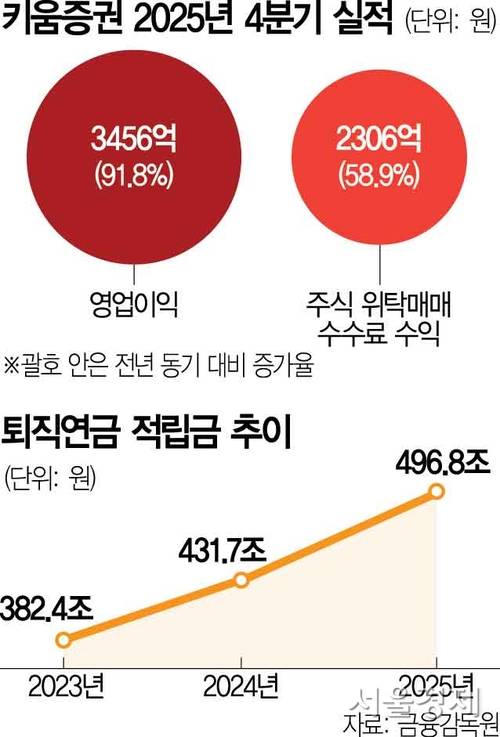 실적 역시 증가세를 보이고 있다. 키움증권의 지난해 연결 기준 영업이익은 1조 4882억 원으로 전년 대비 35.5% 증가했다. 특히 4분기 영업이익은 3456억 원으로 전년 동기 대비 91.8% 늘어나며 분기 기준 뚜렷한 개선 흐름을 보였다.