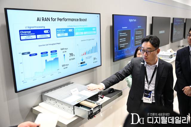 이동우 삼성전자 네트워크사업부 기술솔루션그룹장은 상용 서버 위에 가상화된 네트워크 소프트웨어를 올리고 엔비디아(NVIDIA) L4 GPU를 결합한 AI RAN 엔진을 전면에 내세웠다. 이 그룹장은 "GPU 카드 없이 CPU만으로도 성능 개선이 가능하지만, GPU를 추가하면 복잡한 연산을 더 효율적으로 처리해 추가적인 이득을 얻을 수 있다"고 설명했다.