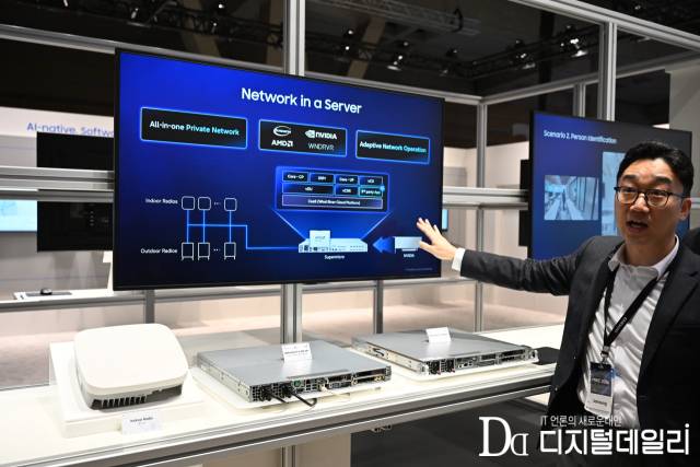사업자간거래(B2B) 시장을 정조준한 네트워크 인 어 서버(Network in a Server, NIS) 실물 전시도 이목을 끌었다. 서버 하나에 RAN, 코어, 트랜스포트 기능을 모두 담은 이 솔루션은 일본 KDDI 등과 협력해 로손(Lawson) 편의점에서 로봇 제어 및 비디오 분석 등 다양한 AI 서비스 플랫폼으로 활용되고 있다.