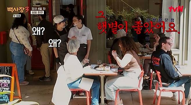 유리는 테라스에 나갔다가 땡볕에서 찡그리고 있는 손님들을 발견하고는 어닝을 쳤다. 그러나 손님들 반응은 좋지 않았다. 오히려 햇볕을 즐기고 있다는 것. 이를 안 유리는 바로 원상으로 복구하며 "저분들이 너무 찡그리시길래"라면서 "진짜 신기하다. 직사광선에서도 저렇게 먹는구나"라고 신기해했다.