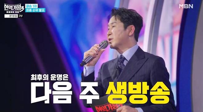 MBN 트로트 서바이벌 프로그램 '현역가왕3'가 3일 방송된 결승 1라운드에서 극적인 동점 상황이 연출되며 당초 규정이었던 탑7 대신 탑8(8명)이 결승전에 진출하는 이변이 일어났다.