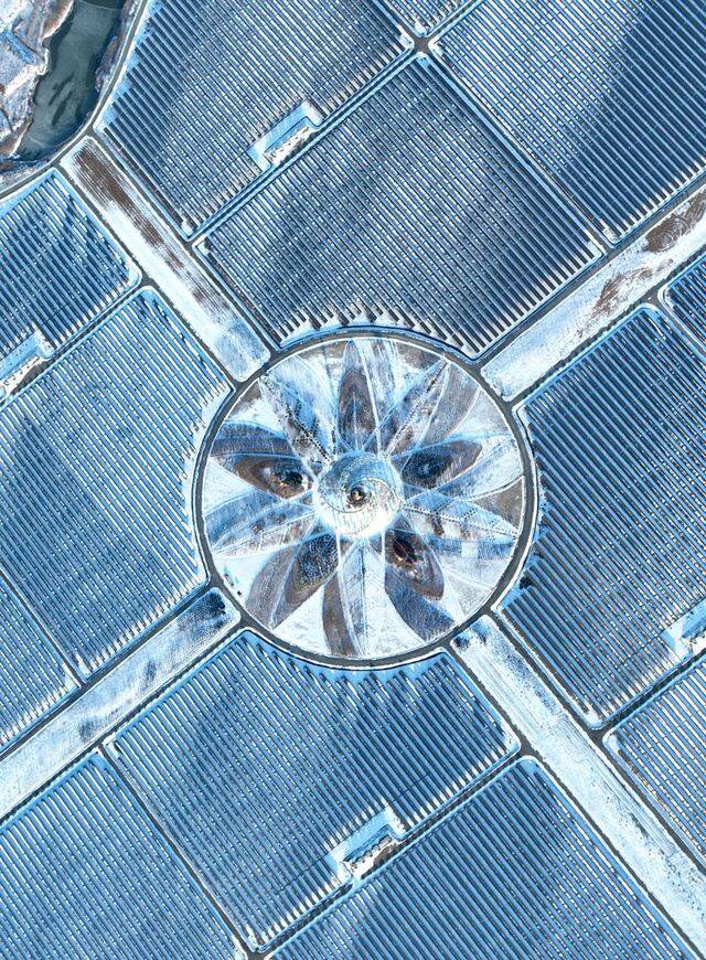 한때 갯벌이던 이곳에 끝없이 펼쳐진 태양광 패널이 들어서 있다.