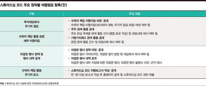 2025년 12월에 발표된 스튜어드십 코드(기관 투자자의 수탁자 책임 원칙) 내실화 방안에 따라 2026년부터 자산운용사 및 연기금을 대상으로 한 이행점검과 공시 의무가 강화된다. 이에 따라 기관 투자자들의 의결권 행사 및 주주 관여 활동은 한층 체계화되고 적극적인 형태로 전개될 가능성이 크다. 아주기업경영연구소는 “스튜어드십 코드 이행점검 제도 도입은 자산운용사 및 연기금으로 하여금 수탁자 책임 활동을 더욱 투명하게 공개하도록 요구함으로써, 기업에 대한 관여 활동과 의결권 행사에 대한 책임성을 강화하는 효과를 가져올 것으로 예상된다”고 강조했다.