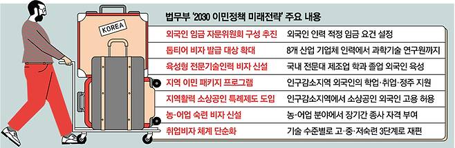 법무부 관계자는 “국내 최저임금을 준수하면서도 외국인이 취업할 수 있는 직종별로 상한을 두는 방법 등을 종합적으로 연구 중”이라고 했다.