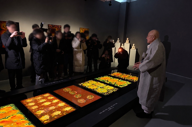 ■ 전시에선 2025년 신작 옻칠회화를 중심으로 옻칠염색·도자불상·도자대장경판까지 150여 점을 선보이는데요. 다양한 작품들을 한 흐름으로 묶어준 공통의 축은 뭐였나요?
