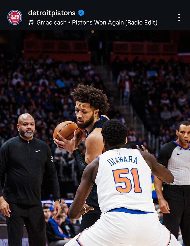 디트로이트 피스톤스는 4일(한국시간) 클리블랜드에 위치한 로켓 아레나에서 열린 2025~2026 NBA 정규리그에서 클리블랜드 캐벌리어스에 109-113으로 졌다. 그러나 동부 컨퍼런스 1위(45승 15패)를 유지했다.