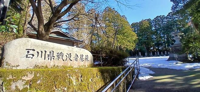 | ▲ 이시가와현 전몰자 묘지 가나자와시 소재 윤봉길 의사 암장지 바로 위에는 전몰자묘지가 조성되어 있었다. 침략전쟁에 나섰다 사망한 군인들의 묘지는 양지 바른 곳에 잘 관리되어 있는 반면, 조국의 독립을 위해 항거한 조선 청년 윤봉길의 주검은 한쪽 구석에 암매장되어 있었다. |