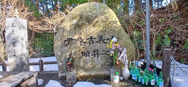 | ▲ 가나자와시 윤봉길 의사 암장지 일제가 1932년 윤봉길 의사를 총살형 집행 후 시신을 묘비 없이 암매장한 장소다. 1946년 유해가 발굴된 이곳은 일본군 묘지 옆 쓰레기 하치장 부근 길가였다. |
