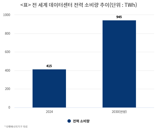 두산 가스터빈, 수소연료전지에 대한 시장의 관심은 더욱 커질 것으로 전망된다. AI 성장 속도가 빨라지면서 전력 수요도 고공행진하고 있기 때문이다. 국제에너지기구(IEA)에 따르면 전 세계 데이터센터 전력 소비량은 2024년 415TWh(테라와트시)에서 2030년 2배 이상 증가한 945TWh에 이를 전망이다.