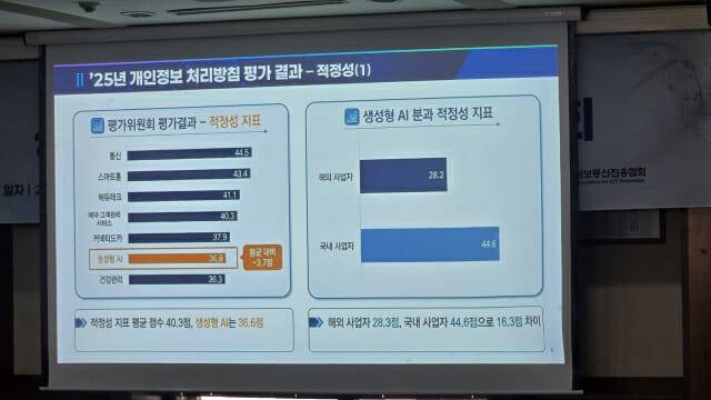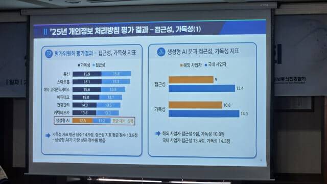 개인정보보호위원회가 ▲커넥티드카 ▲에듀테크 ▲스마트홈 ▲생성형 AI ▲통신 ▲예약·고객관리 ▲건강관리앱통신 등 7대 산업을 대상으로 시행한 '2025년 개인정보 처리방침 평가'에서 생성형AI가 최하위권에 속했다.