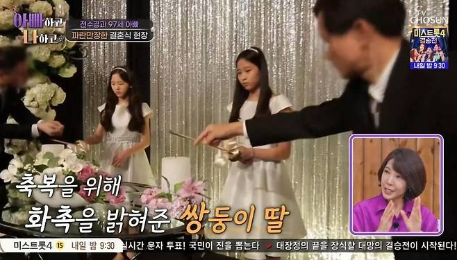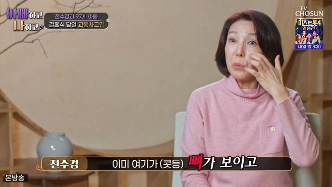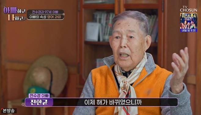 4일 방송된 TV CHOSUN 예능 프로그램 '아빠하고 나하고 시즌3'에서는 배우 전수경이 97세 아버지와의 일상을 공개했다.