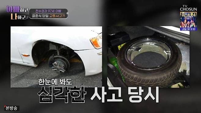 이어 "저도 한번도 안 타봤다. 이때 아니면 제가 언제 타보겠나. 제가 우겨서 그 차가 왔다. 사진 촬영하고 안에서 거의 다 왔다. 300미터 앞에 호텔이 보인다. 그런데 갑자기 뭔가 '퉁'했는데 바퀴가 빠진 거다"라고 말해 놀라움을 자아냈다.