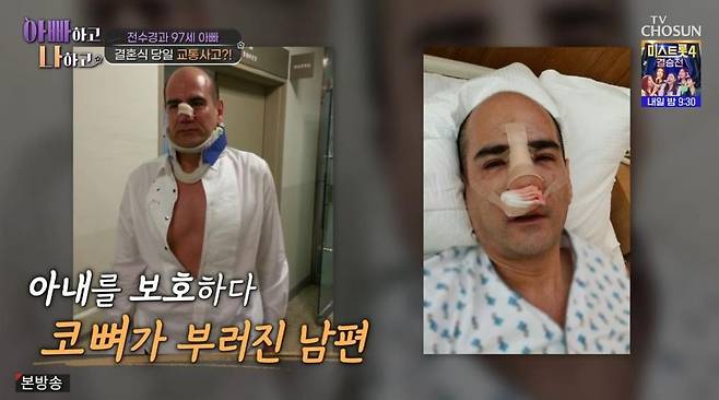 이날 전수경은 과거 결혼식 사고를 언급했다. 그는 "결혼식 날 교통사고 당하는 사람이 몇이나 있겠냐"라며 당시를 회상했다. 자료화면에는 결혼식 사진 속 남편이 코에 깁스를 하고 있는 모습이 담겼다. 이를 보고 전현무는 "난 솔직히 성형 수술을 한 줄 알았다"라며 놀랐다.