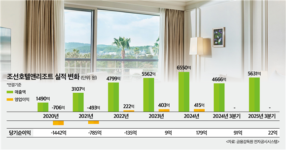이 가운데 지난해 3분기 이마트(139480)의 연결보고서를 보면 지난해 3분기 조선호텔앤리조트의 분기손이익은 22억원으로 전년 동기(91억원) 대비 4분의 1 수준으로 쪼그라들었다. 2024년 하반기 양수도를 최종 마무리한 이후 이자 비용이 반영되면서다.