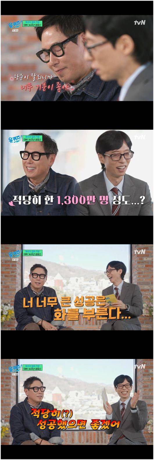 윤종신은 “마지막으로 장항준이 적당히 성공했으면 좋겠어요. 너무 성공하면 너 망한다”라며 쐐기를 박더니 “적당히 1,300만 명 정도 관객 수를 찍으면 좋겠다”, “사실 항준이 잘 돼서 너무 좋아요”라며 몹시 기뻐해 진짜 우정을 보여주었다./osen_jin0310@osen.co.kr