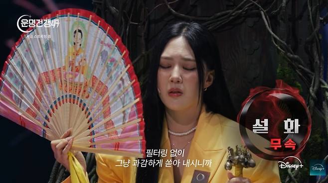 4일 디즈니+ 시리즈 '운명전쟁49' 최종회가 공개됐다. 이날 TOP3에 진출한 운명술사 설화, 이소빈, 윤대만은 각각 원하는 세 명의 의뢰인 사진 앞에 섰다.