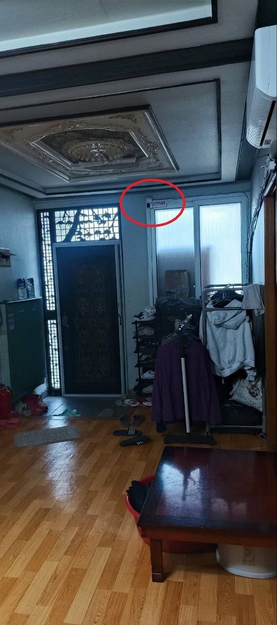 | ▲ 이주노동자들의 숙소 내부 CCTV 필리핀 국적 이주노동자 A씨가 숙소를 탈출하면서 촬영한 CCTV. 숙소 현관 부근에 부착돼 거실을 비추고 있다. 단층 건물 방 세 칸의 이 숙소에서 약 15명의 이주노동자가 생활한 것으로 알려졌다. |