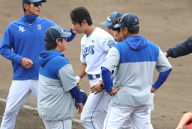 삼성 '또또' 부상 이탈자 나왔다…한화전 '헤드샷 맞은' 이해승, 뇌진탕 증세 보여 6일 한국행 [오키나와 현장]