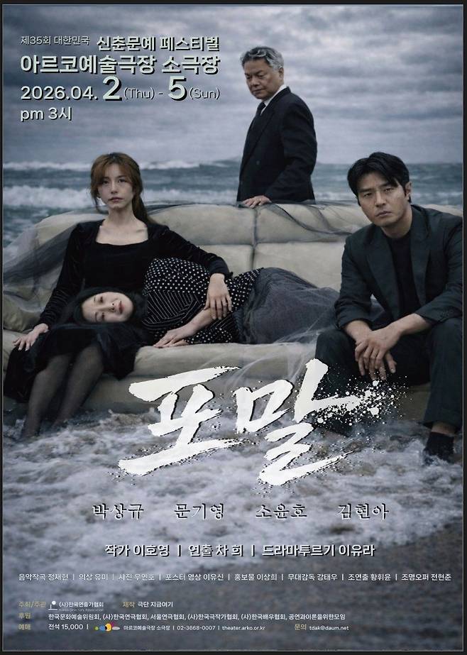극단 지금여기는 2026 서울신문 신춘문예 희곡 당선작 ‘포말’을 무대에 올린다. ‘포말’은 제주도 호텔 스위트룸을 배경으로, 한 가족이 여행이라는 명목 아래 모였으나 결국 각자의 상처와 기억을 마주하게 되는 과정을 그린 작품이다.