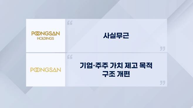 그런데 사업 회사인 풍산은 “기업과 주주 가치 제고를 목적으로 구조 개편을 검토 중으로 향후 재공시하겠다”라며 미온적으로 반응했습니다.