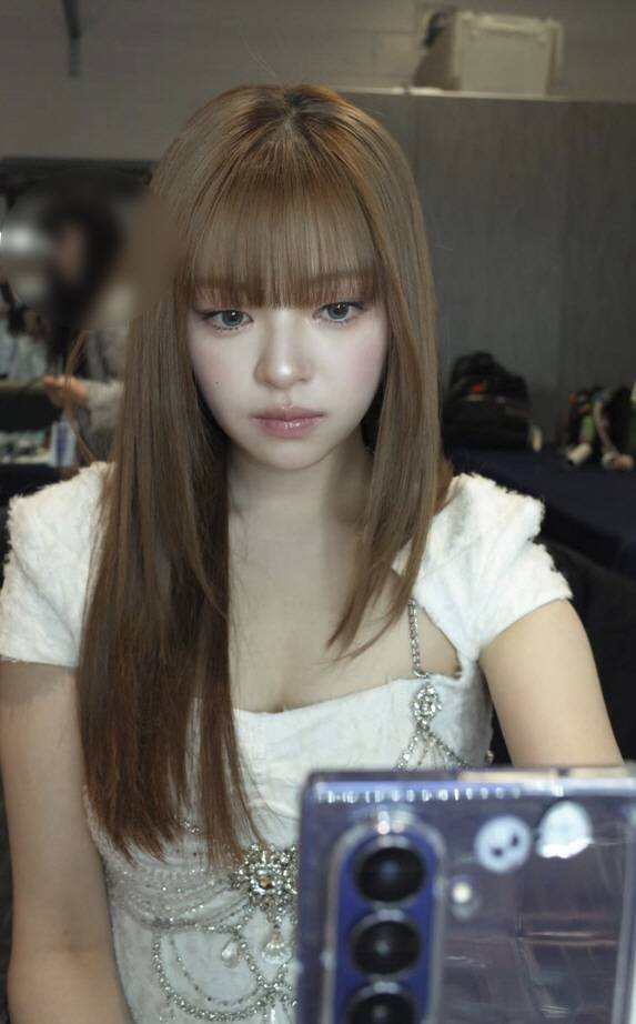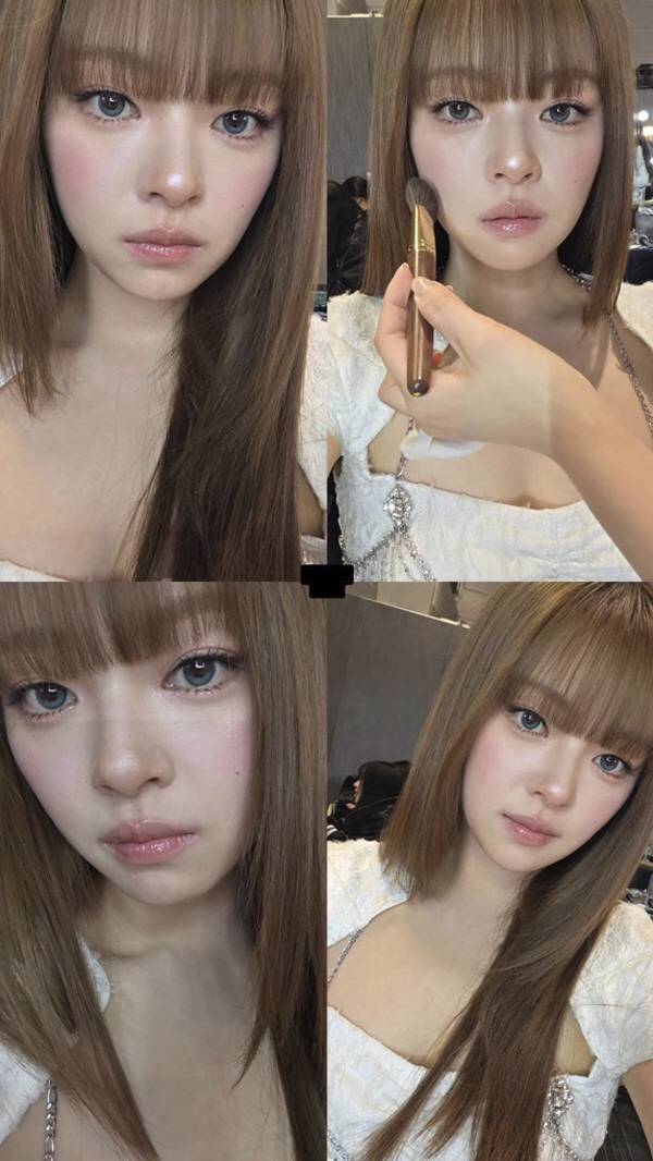 사진 속에는 무대에 오르기 전 메이크업 수정을 받고 있는 정연의 모습이 담겨있다. 이때 긴 생머리에 파란색 렌즈를 착용한 정연은 인형 같은 비주얼을 자랑하며 시선을 사로잡았다.