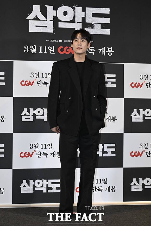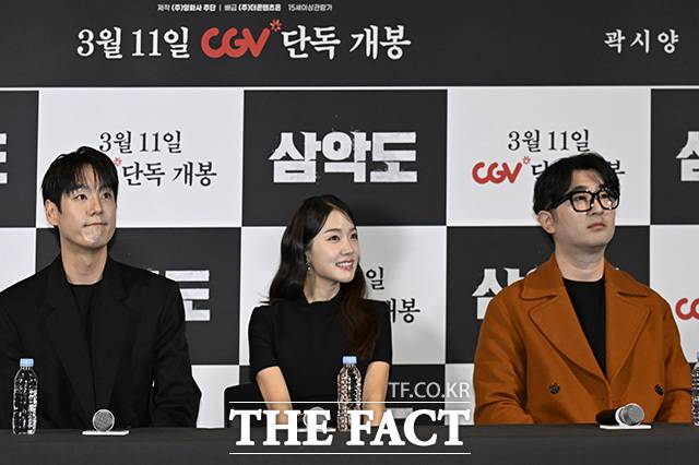 배우 곽시양과 채기준 감독, 배우 조윤서(왼쪽부터)가 5일 오후 서울 용산구 CGV용산아이파크몰에서 열린 영화 '삼악도' 언론시사회 및 기자간담회에 참석해 포즈를 취하고 있다.