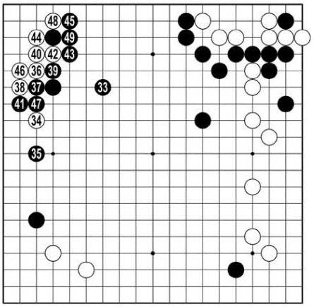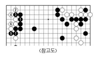 인공지능 카타고는 귀에서 산 백 포석에 더 점수를 준다. <참고도>처럼 흘렀다 해도 백 승률이 60%에 이른다.