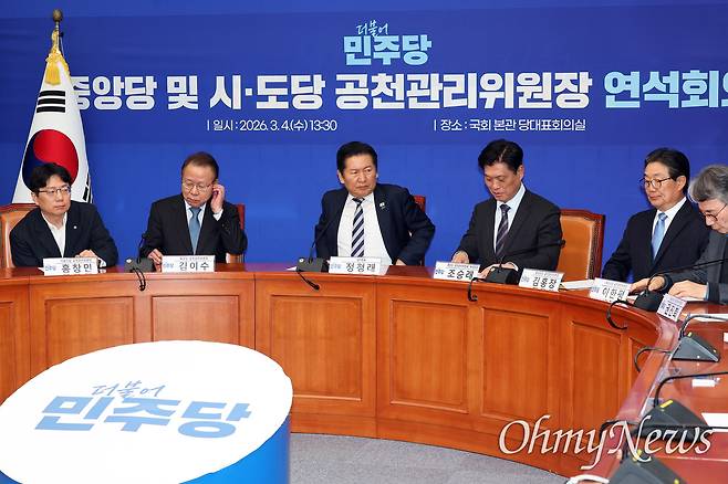 | ▲ 정청래 더불어민주당 대표가 4일 서울 여의도 국회에서 열린 중앙당 및 시도당 공천관리위원장 연석회의에 참석하고 있다. |