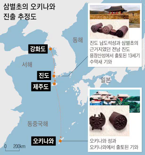 이제 학계에서 이런 주장이 나왔다. 삼별초 세력은 제주도에서 모두 궤멸된 것이 아니라, 그 일부가 오키나와로 이동해 새로운 정치 세력을 형성했을 수 있다는 것이다. 추정은 이어졌다. 삼별초가 한국사에서 사라진 12세기부터 오키나와에선 비로소 농경이 본격화됐고 인구가 급속히 늘어났으며 큰 성도 축조됐다. 고려에서 이주한 세력의 이 같은 활동이 1429년 류큐 왕국 수립에 기여를 했던 것은 아닐까.