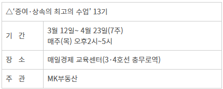 [MK 세무 교육] 증여·상속의 최고의 수업 ‘13기’