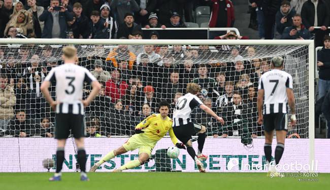 그런데 선제골은 오히려 뉴캐슬의 몫이었다. 전반 추가 시간 6분 앤서니 고든이 브루노 페르난데스에게 걸려 넘어지며 페널티킥을 얻었다. 고든이 키커로 나서 득점을 만들었다. 맨유도 빠르게 동점골을 넣었다. 전반 추가 시간 9분 카세미루가 골 맛을 봤다.