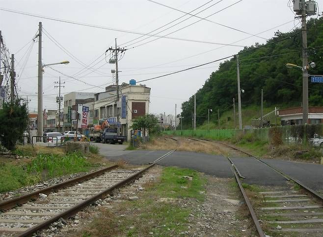 | ▲ 군산선(왼쪽)과 옥구선(오른쪽). 건널목 주변은 새벽마다 쌀시장 섰던 ‘팔마장터’였으며, 군산의 관문이자 전군도로 시작점이기도 했다. |
