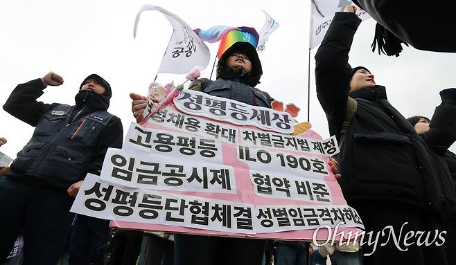 [오마이포토] "성별 임금 격차 해소, 동일 임금 쟁취"