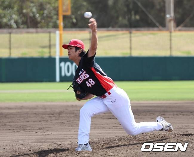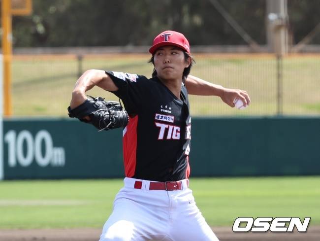 이의리는 6일 일본 오키나와현 긴타운베이스볼스타디움에서 열린 2026 스프링캠프 LG 트윈스와의 연습경기에 선발등판해 3이닝을 피안타 없이 2볼넷 4탈삼진 무실점을 기록했다.