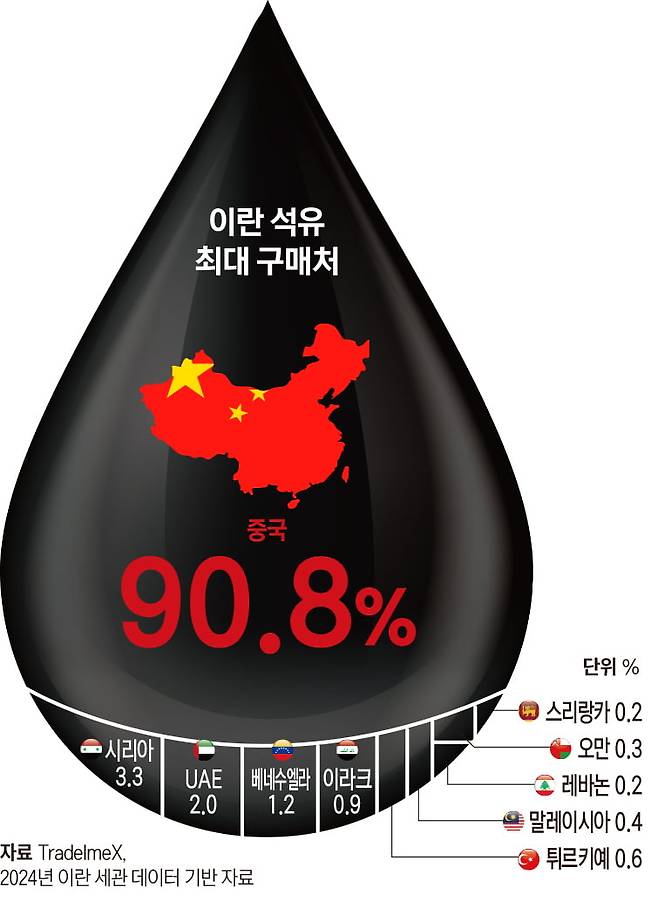실제 이란과 베네수엘라는 중국의 가장 중요한 우방이자 저가 원유 공급처다. 중국은 원유 소비량의 70% 이상을 수입에 의존하는데 이번 작전으로 중국 수입량의 약 20%를 담당하던 거래처가 사실상 소멸했다. 특히 중국 원유 수입량의 3분의 1이 통과하는 호르무즈해협을 마비시킨 것은 중국의 제조 공급망 전체를 인질로 잡은 것과 다름없다.