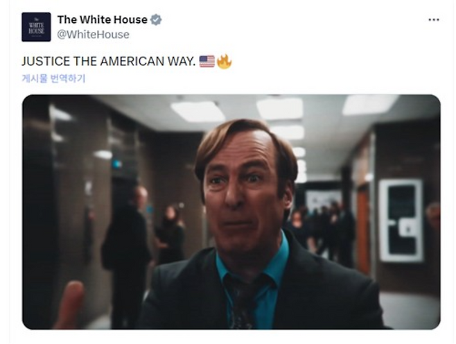 백악관은 이날 "미국식 정의"라는 문구와 함께 42초 분량의 홍보 영상을 소셜미디어 엑스(X·옛 트위터) 공식 계정에 공개했다.