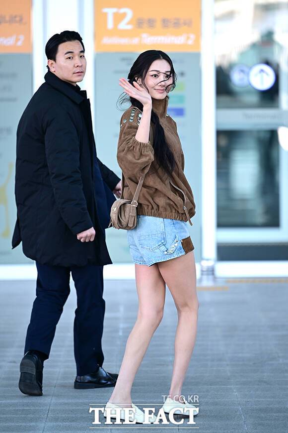 [더팩트ㅣ인천국제공항=남윤호 기자] 그룹 미야오의 가원이 7일 오전 인천국제공항에서 프랑스 파리로 출국하며 포즈를 취하고 있다.