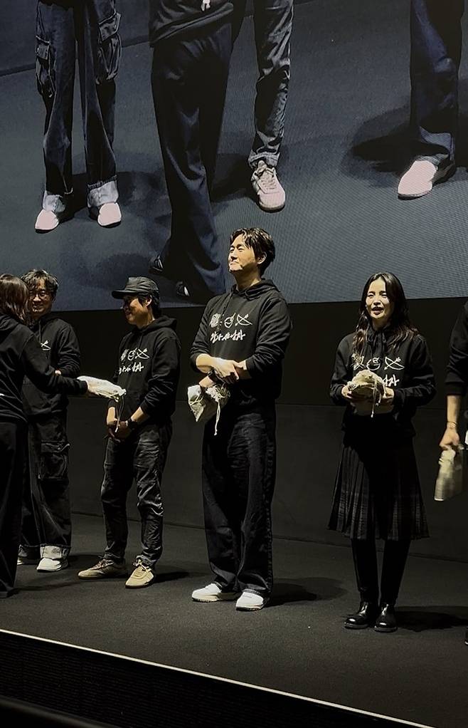 사진 속 유지태는 다른 배우들 사이에서도 단연 눈에 띄는 압도적인 체격을 드러낸 모습이다. 넓은 어깨와 큰 체구로 무대 위에서 존재감을 드러내며 “실물로 보면 웬 소두 곰 한 마리가 있다” “압도적인 덩치” “기골이 장대하다”라는 반응이 이어졌다.