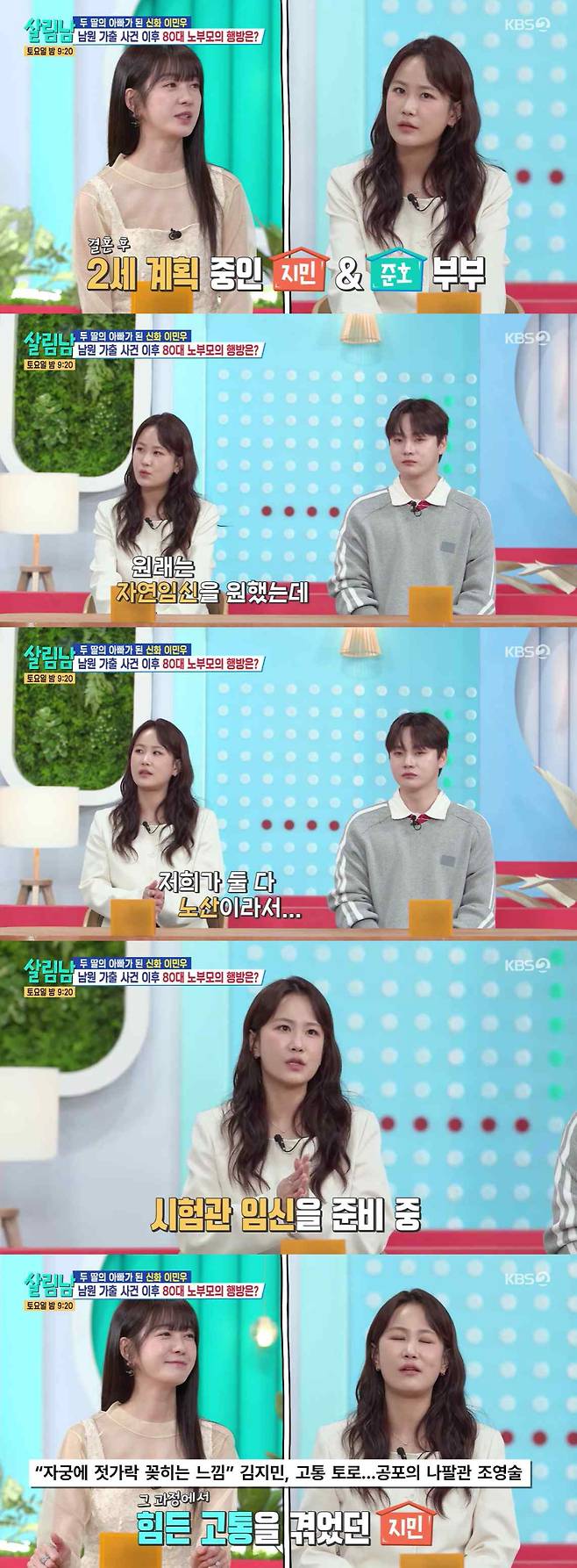 특히 김지민은 2세를 준비 중이라고 털어놓으며 "원래는 자연임신을 시도했는데 둘 다 노산이다"라며 "얼마 전 시험관 시술 전 조영술을 했는데 정말 말도 안 되는 아픔을 겪었다"고 고백했다.