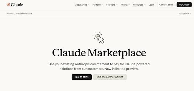 앤스로픽은 6일(현지시간) 기업 고객이 클로드 기반 애플리케이션을 한곳에서 구매할 수 있는 온라인 장터 ‘클로드 마켓플레이스(Claude Marketplace)’를 출시했다고 밝혔다.
