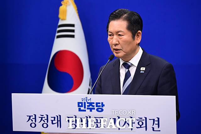 정청래 당대표 취임 후 두 번째 회견 "6·3 지방선거 승리가 지상과제" [TF사진관]