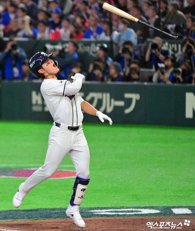 자칫 흐름을 넘겨줄 수도 있던 상황. 여기서 한국의 저력이 또 나왔다. 8회말 바뀐 투수 쑨이레이에게 김주원과 대타 문현빈이 모두 삼진으로 물러났지만, 김혜성이 볼넷 출루에 성공했다. 이어 역전포의 주인공 김도영이 우중간을 가르는 2루타를 뽑아내 결국 4-4 동점이 됐다.